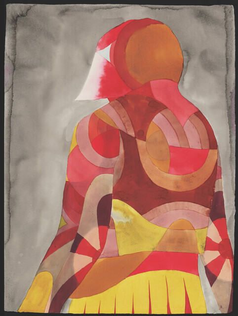 Watercolor, sumi ink, vermilion sumi ink, "anchae" paint, and handmade walnut ink on paper, 77 × 56.6 cm