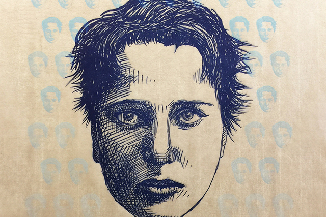 Skirt suit, grey cotton with broken glass and skeleton print, by Sarah Whitworth for New Masters, Great Britain, 1983. Jacket, grey cotton with spider and skeleton print, by Sarah Whitworth's label New Masters, Great Britain, 1983; Skirt, grey cotton with