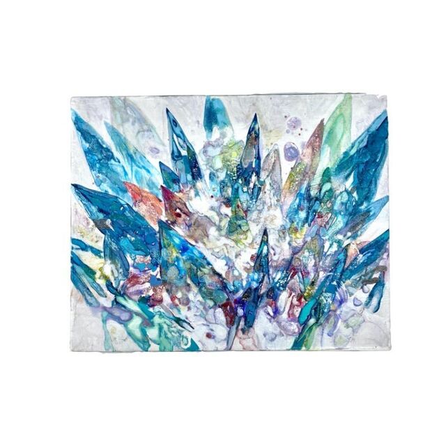 Acrylic paint, Neil polish, Gesso, 22 × 27.
