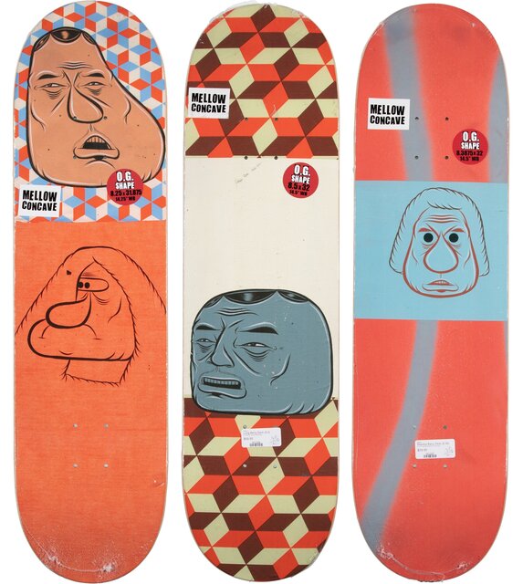 Barry McGee, Theotis Barry Deck; Dollin Barry Deck; Reynolds Barry Deck; Steamer Barry Deck; Spanky Barry Deck (five works) (2021)