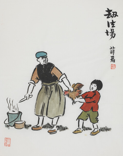 Song Feijun 宋菲君, Heavily Drunk Heavily drunk, the old farmer walks as if he were dancing; two children support and assist him to get on the boat. (2023)