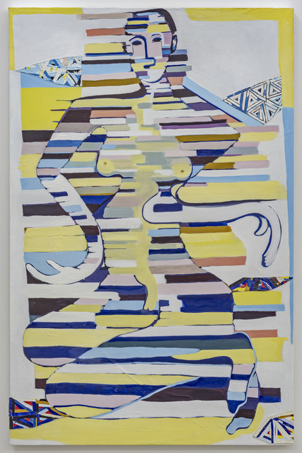 Collage and oil on canvas, 62 × 37 × 2 in...