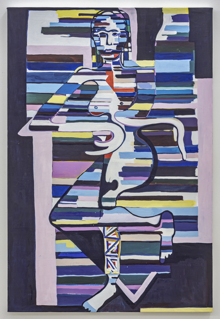 Collage and oil on canvas, 55 × 37 × 2 in.