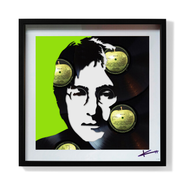 Original 12" John Lennon vinyl in black frame, 52 × 52 cm.