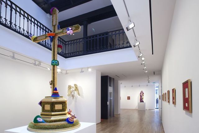 Harvest wreaths made in 2009 after the harvest and placed in front of the church in the Kuyavian-Pomeranian village of Węgorzyn.The tradition of the harvest festival in various cou...