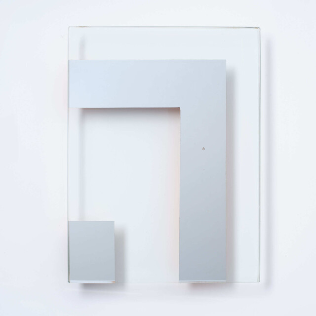 Glass, mirror and aluminum sculpture, 24 × 18 × 0.