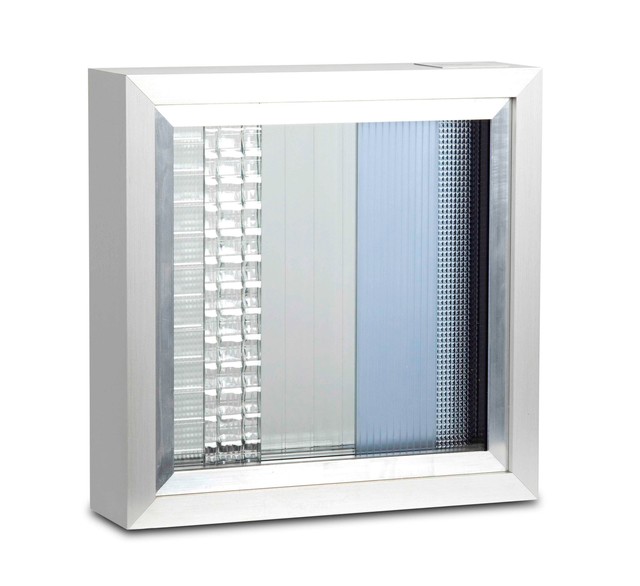 Aluminium frame, fluted glass and mirror, 100 × 100 × 10 cm...