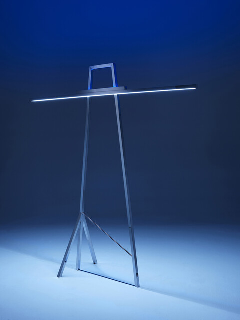 Chrome steel, fluorescent light, 243 × 215 × 26 cm...