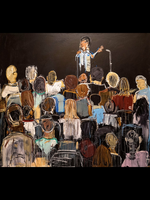 Acrylic & oilstick on canvas, 52 × 72 in...