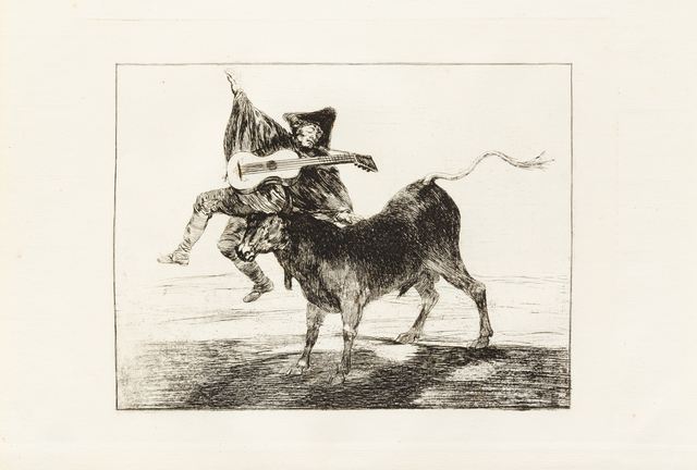 Francisco de Goya, A group of 3 prints including Tan bárbara la Seguridad come el Delito ('The Little Prisoner'), c. 1820; Dios se lo pague a usted ('Blind Man tossed on the Horns of a Bull'), c. 1800-1808; and Al Toro y al Aire Darles Calle (Lluvia de To