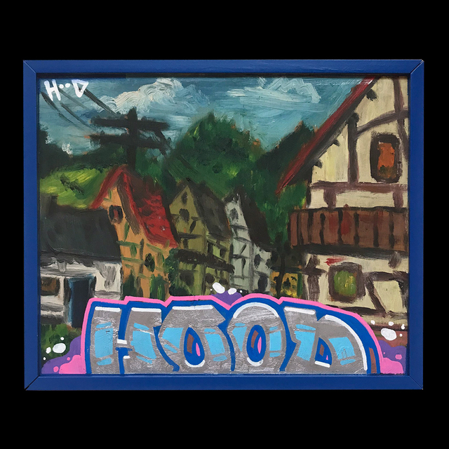 Marker and spray paint on plaster relic, 23 × 23 × 5 cm...