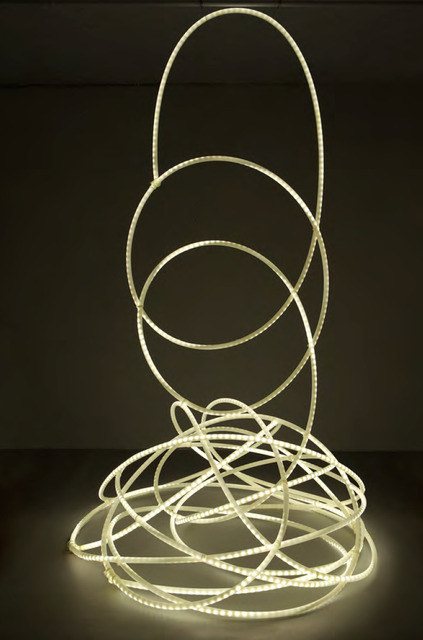 LEDs, diffusion material, custom lighting sequence, electrical hardware, 47 × 51 1/2 × 19 in...