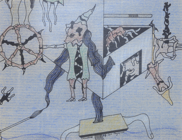Ink and pencils on blue paper, 13.5 × 18 cm
