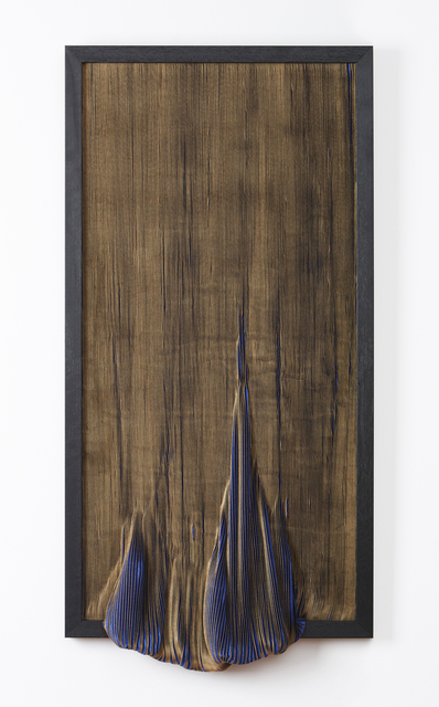 Scorched Tasmania oak, paper and pleated polyester textile, 95.5 × 50 cm...