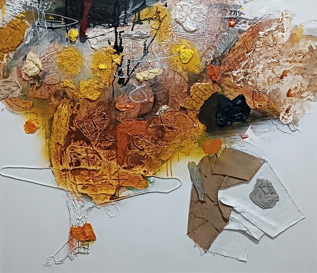 Acrylic, collage, texture on Canvas, 140 × 180 cm...