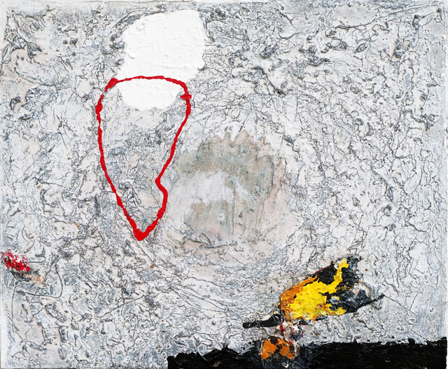 Acrylic, collage, texture on Canvas, 140 × 180 cm...