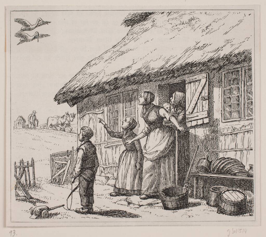 Illustration til "Storken er kommen", digt af Gotfred Rode