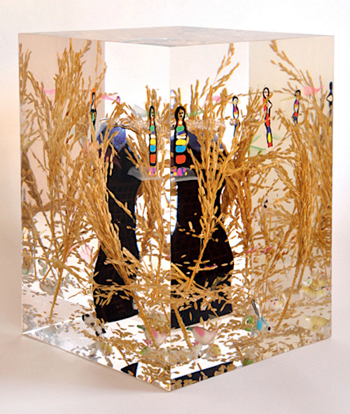 Acrylic glass, IKAT material,Tull, Diamond by Swarowsky,Porcelaine, 32 × 22.