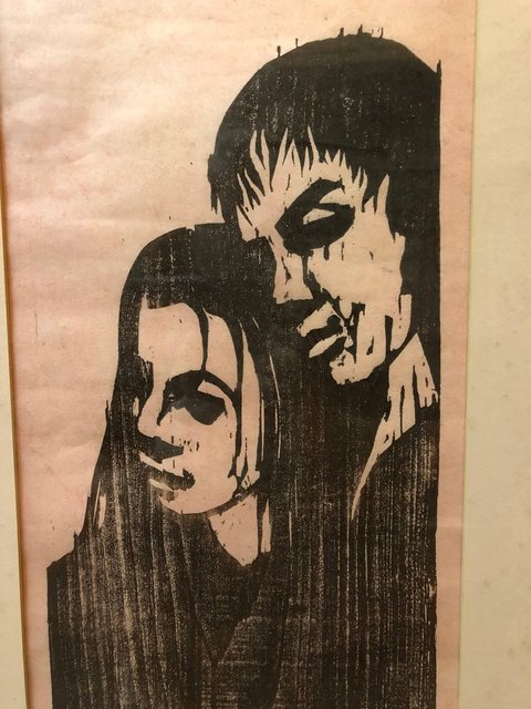Title: Jacob Pins, German Israeli Large Expressionist Woodcut Print Couple (1970-1979)