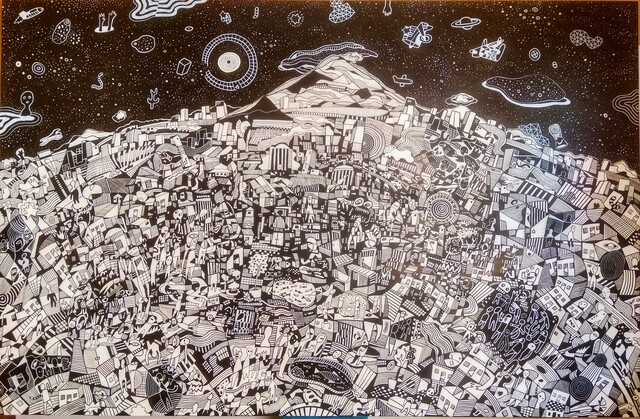 Acrylic & Paint Marker on Canvas, 100 × 150 cm...