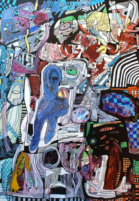 Acrylic, Paint Marker on Canvas, 150 × 100 cm.