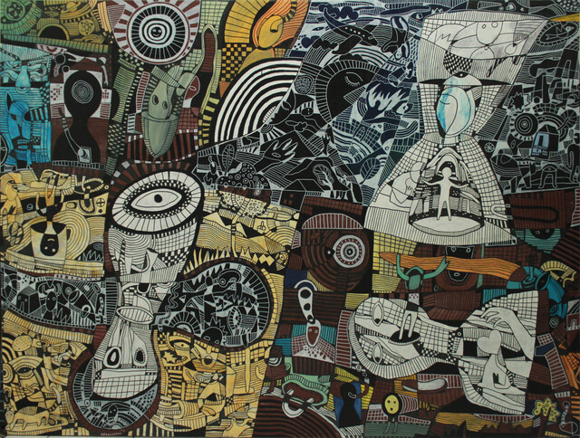 Acrylic & Paint Marker on Canvas, 150 × 200 cm.