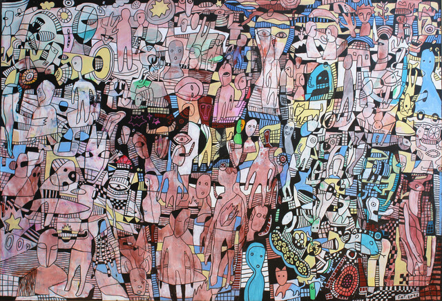 Acrylic & Paint Marker on Canvas, 100 × 150 cm.