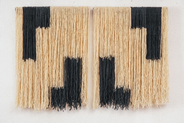 Ink-dyed wool threads, 80 × 120 × 4 cm.
