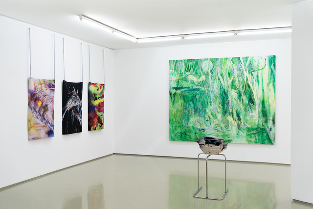 Laurie Hogin, A Red-Faced Hog Stands Guard in his Agri-Industrial Wasteland, Framed by Four American Beauty Roses (Nostalgia and Moonlight) (2020)