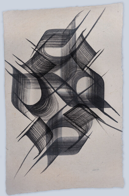 Ink on Nepali Handmade Paper, 20 × 30 × 1 in.