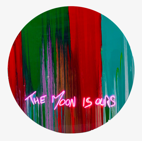 Acrylic and Resin on Aluminum with Neon, 46 × 46 in.