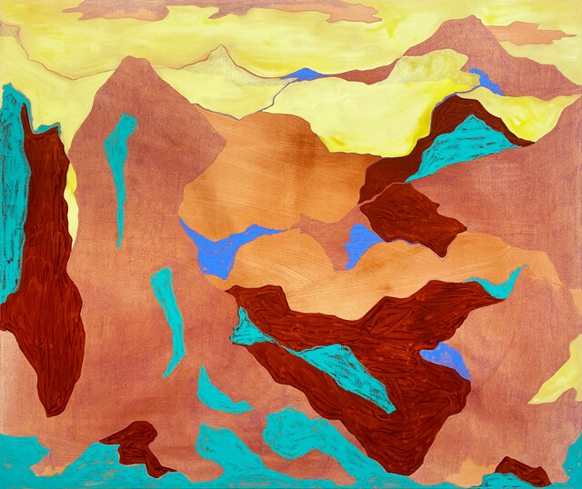 Acrylic, caran d'ache, & oil stick on canvas, 50 × 60 in.