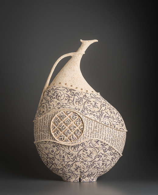 Hand-built, glazed and stencilled earthenware, 59 × 39 × 19 cm.
