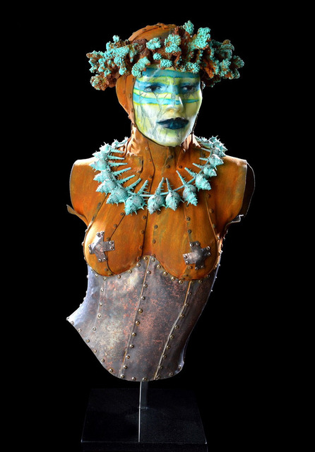 Acrylic, lead, shells, coral and oil paint, 29 × 15 × 11 in.