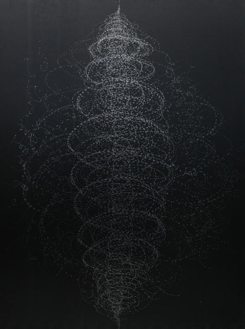 Graphite fixing to the drill on canvas, 146 × 114 cm.