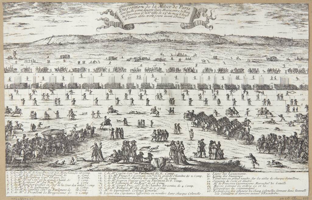 Title: Garnisionen i Paris, opstillet til ære for Louis XIV and Maria Theresa d. 23 august 1660