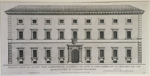 Giovanni Battista Falda, Palazzo dell Ill et Rev Mons Commendatore di Santo Spirito nel Rione di Borgo Fabbricato da Gregorio XIII, con Architecttura di Otttaviano Mascherini Plate 56 from Palazzi di Roma de Piu Celebri Architectti, vol II (1655)