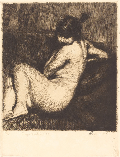 Etching, drypoint, and aquatint in black on laid paper...