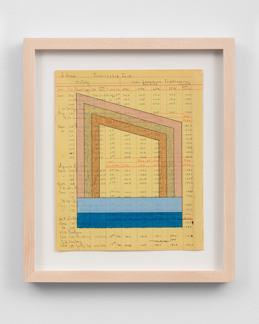 Ink and colored pencil on antique “Taxes Collected By City Treasurer (dated 1912); Watermark: Alpha Linen Ledger, 16 1/2 × 14 1/2 in...