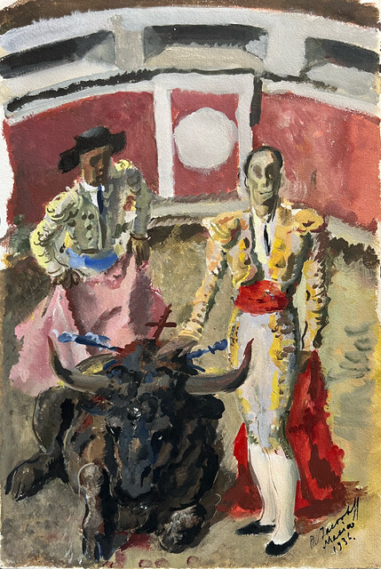 Soviet event poster of the Evening celebrating the 100th anniversary of classical Yiddish writer Mendele Mocher Sforim (1836-1936). The event is organized under auspices of the cel...