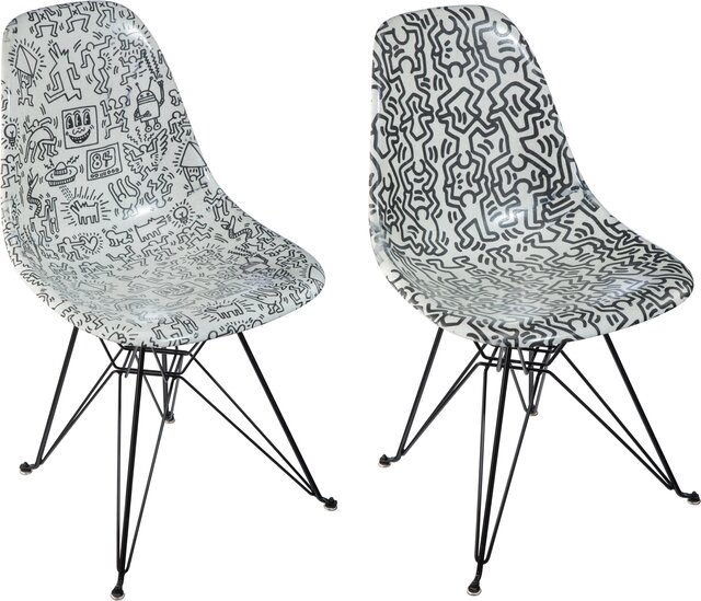 Title: Eric Orr X The Keith Haring Foundation, Keith Haring Case Study Furniture Chair - Faces and Figures (two works) (2018)