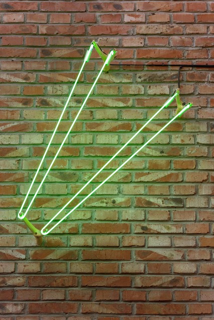 Neon light, wood branch, transformer, 90 × 80 × 30 cm.