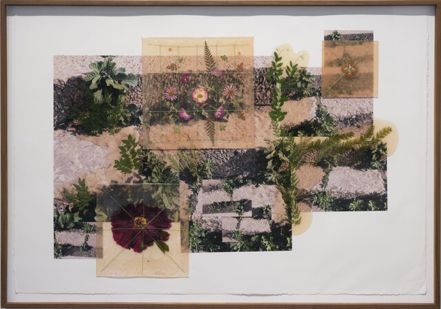 Photographs, rubber, plant life, and thread on Rives BFK paper, 20 × 30 × 1 in...