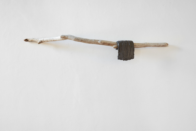 Gres porcelain, wood, wax, 25 × 100 × 15 cm.