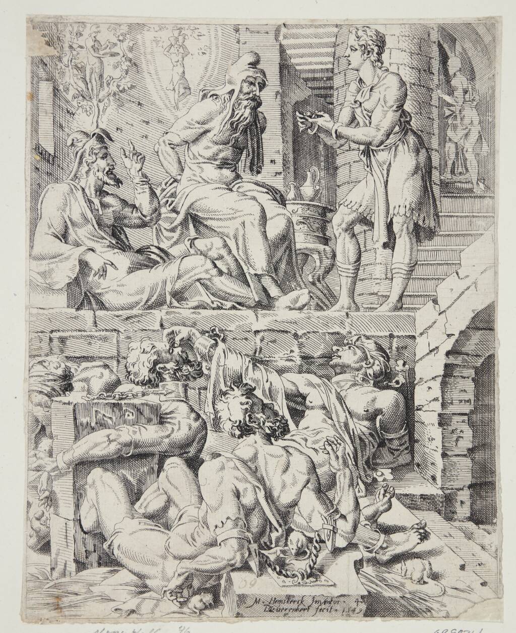 Joseph interpreting the dreams of the butler and the baker