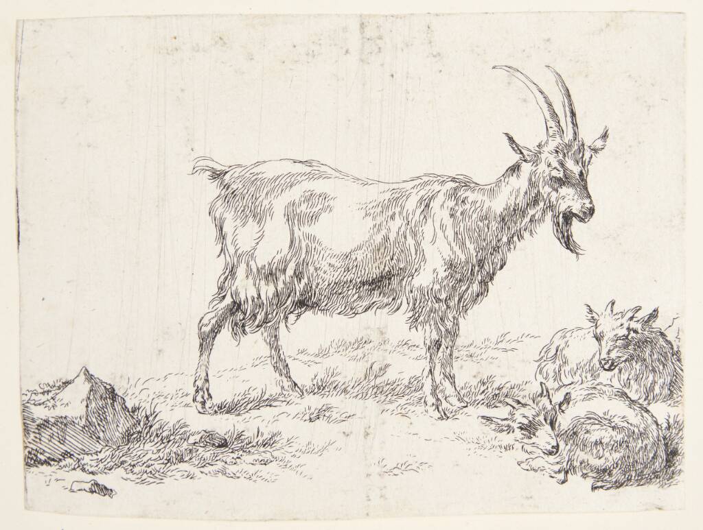 Title: Stående ged og to gedekid