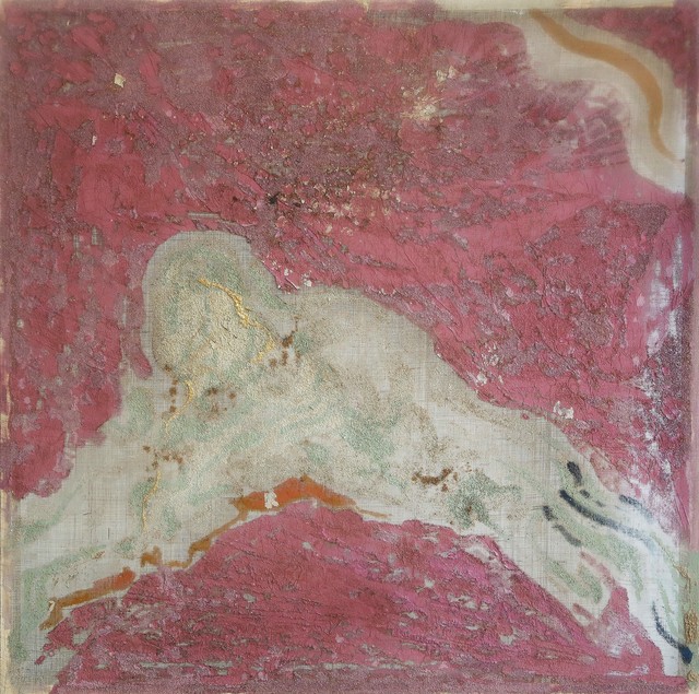 Lacquer, ramie, gold leaf, sawdust, 105 × 105 cm.