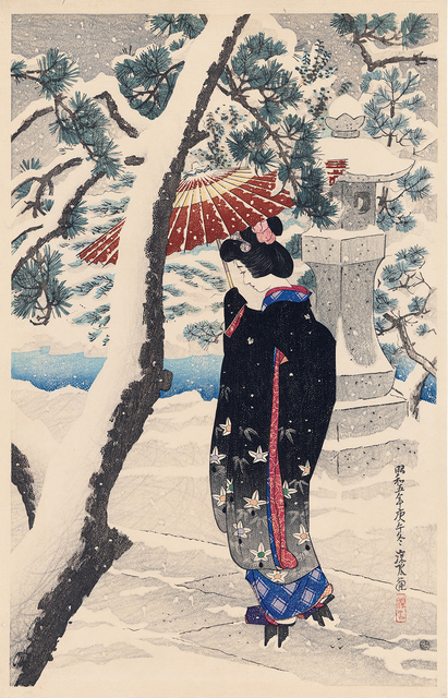 Title: Itō Shinsui, Snow at the Shrine (1844)