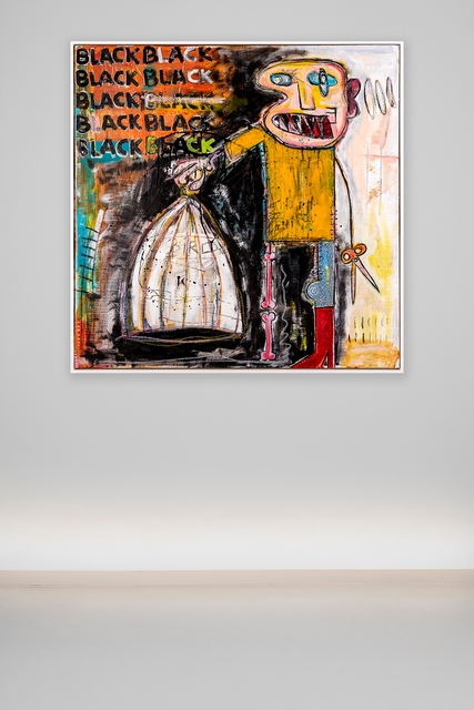 Oil, acrylic, pastel, chalk, enamel, pencil on canvas, 90 × 100 × 4 cm...