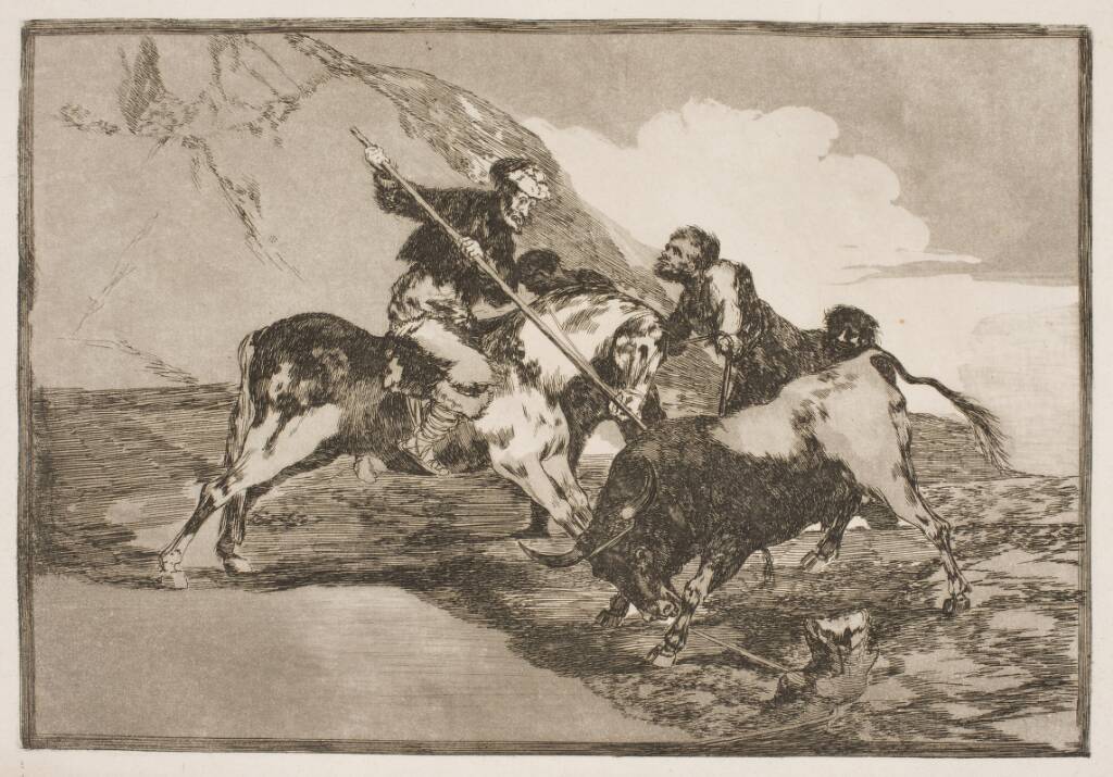 Title: Den måde, hvorpå de gamle spaniere til hest jagede tyre på sletten.